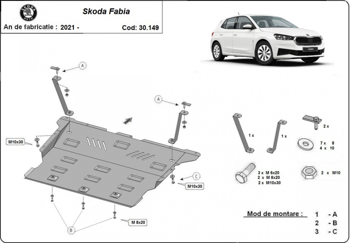 | Kryt pod motor je nová a dokonale padne pro všechny verze Skoda Fabia vyrobené v letech 2021 až 2026. |