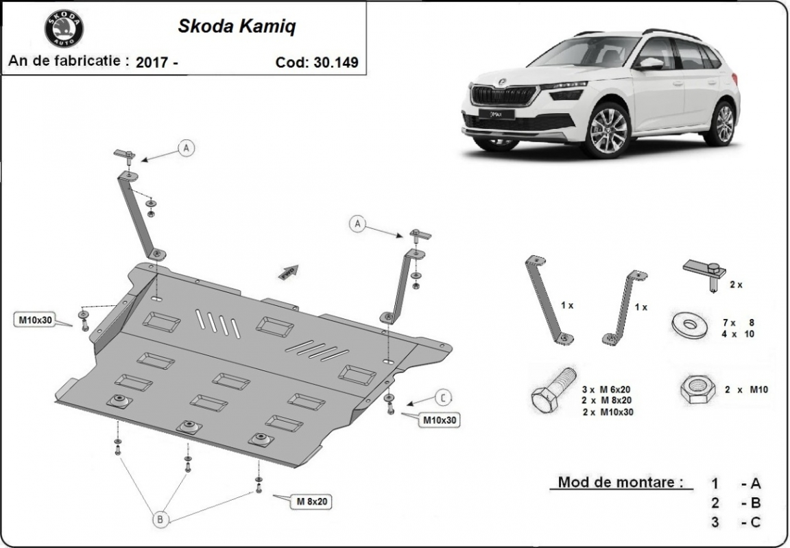 | Kryt pod motor je nová a dokonale padne pro všechny verze Skoda Kamiq vyrobené v letech 2019 až 2026. |