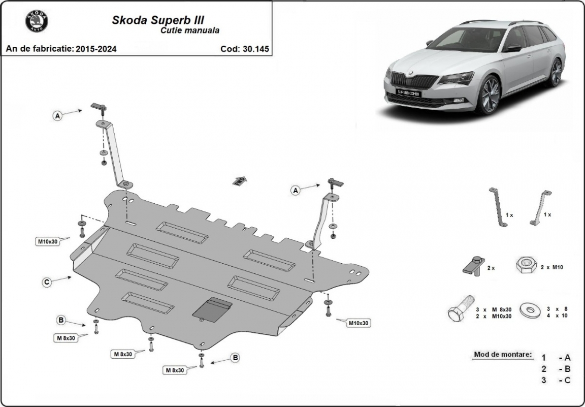 Kryt pod motor Skoda Superb - ruční převodovka (2015-2024)