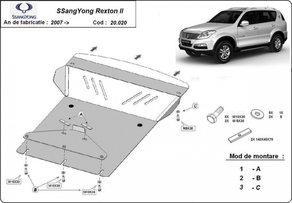 | Kryt pod motor je nová a dokonale padne pro všechny verze SsangYong Rexton 2 vyrobené v letech 2007 až 2017. |