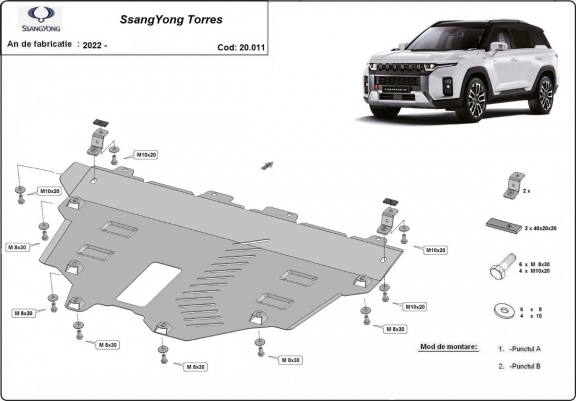 | Kryt pod motor je nová a dokonale padne pro všechny verze Ssangyong Torres vyrobené v letech 2022 až 2026. |