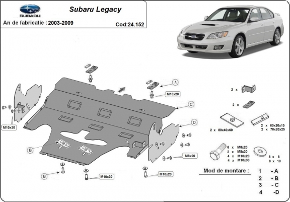 | Kryt pod motor je nová a dokonale padne pro všechny verze Subaru Legacy IV vyrobené v letech 2003 až 2009. |