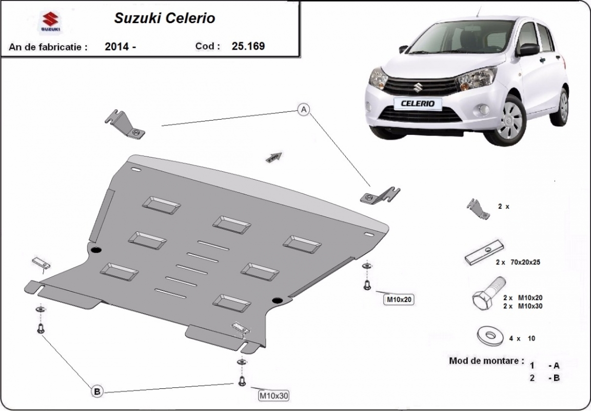| Kryt pod motor je nová a dokonale padne pro všechny verze Suzuki Celerio vyrobené v letech 2014 až 2026. |