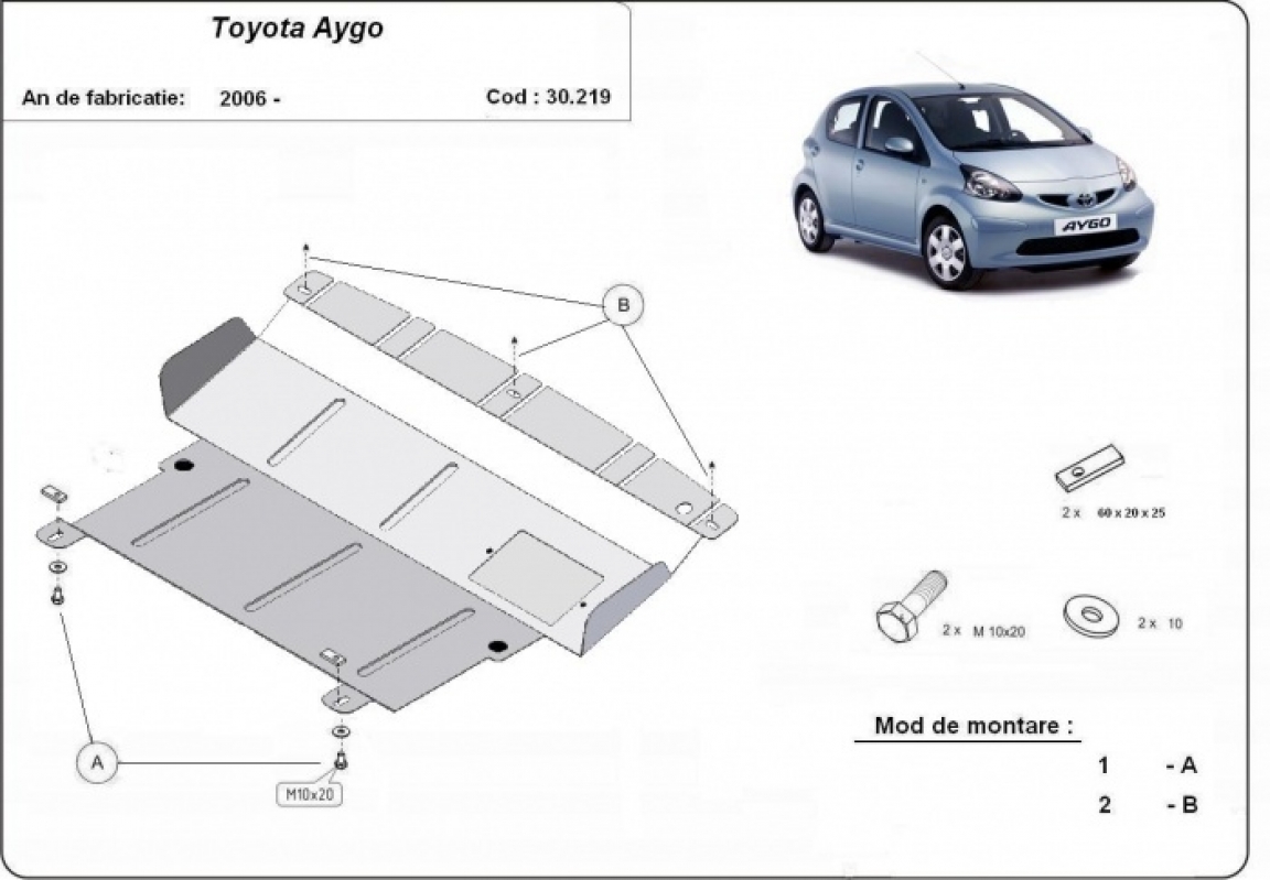 | Kryt pod motor je nová a dokonale padne pro všechny verze Toyota Aygo AB10 vyrobené v letech 2005 až 2014. |