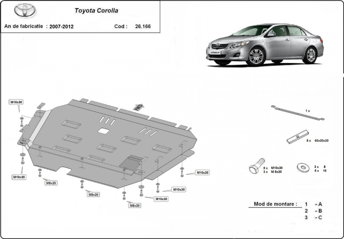 | Kryt pod motor je nová a dokonale padne pro všechny verze Toyota Corolla vyrobené v letech 2007 až 2012. |