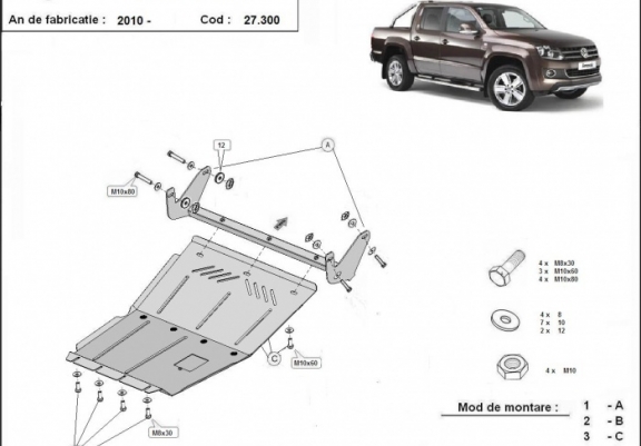 | Kryt pod motor je nová a dokonale se hodí pro Volkswagen Amarok, s následujícími verzemi motor / pohon: 2.0L, 3.0L - vyráběné v letech 2010 až 2022. |