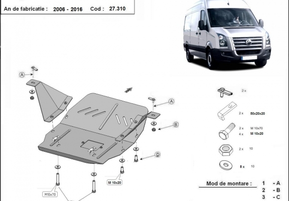 | Kryt pod motor je nová a dokonale padne pro všechny verze Volkswagen Crafter vyrobené v letech 2006 až 2016. |