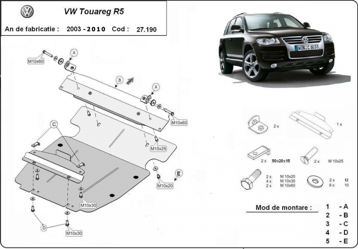 | Kryt pod motor je nová a dokonale padne pro všechny verze Volkswagen Touareg 7L vyrobené v letech 2003 až 2010. |