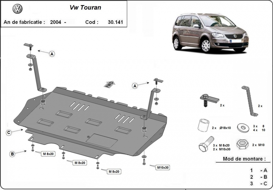 | Kryt pod motor je nová a dokonale padne pro všechny verze Volkswagen Touran vyrobené v letech 2003 až 2015. |