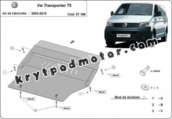 | Kryt pod motor je nová a dokonale padne pro všechny verze Volkswagen Transporter T5 vyrobené v letech 2003 až 2015. |