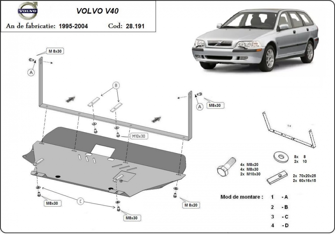 | Kryt pod motor je nová a dokonale padne pro všechny verze Volvo V40 vyrobené v letech 1995 až 2004. |