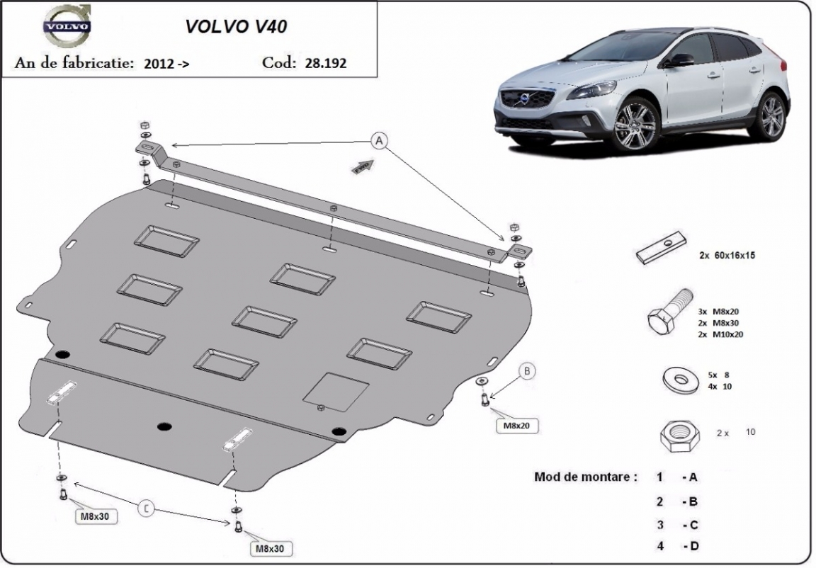 | Kryt pod motor je nová a dokonale padne pro všechny verze Volvo V40 vyrobené v letech 2012 až 2019. |