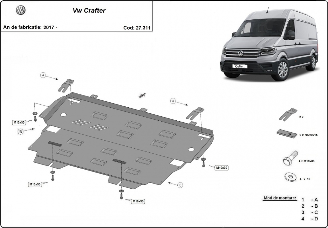 | Kryt pod motor je nová a dokonale padne pro všechny verze Vw Crafter vyrobené v letech 2017 až 2026. |