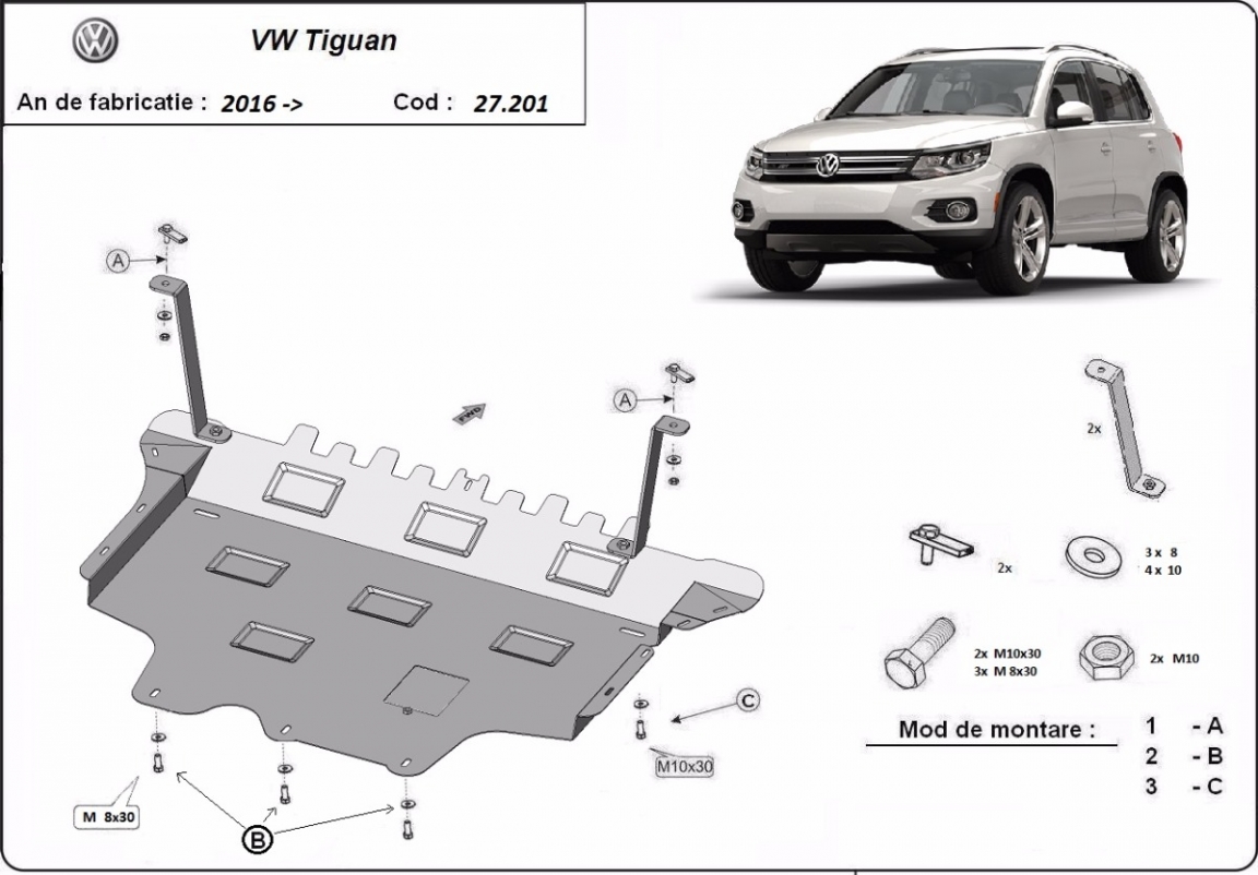 | Kryt pod motor je nová a dokonale padne pro všechny verze VW Tiguan vyrobené v letech 2016 až 2024. |