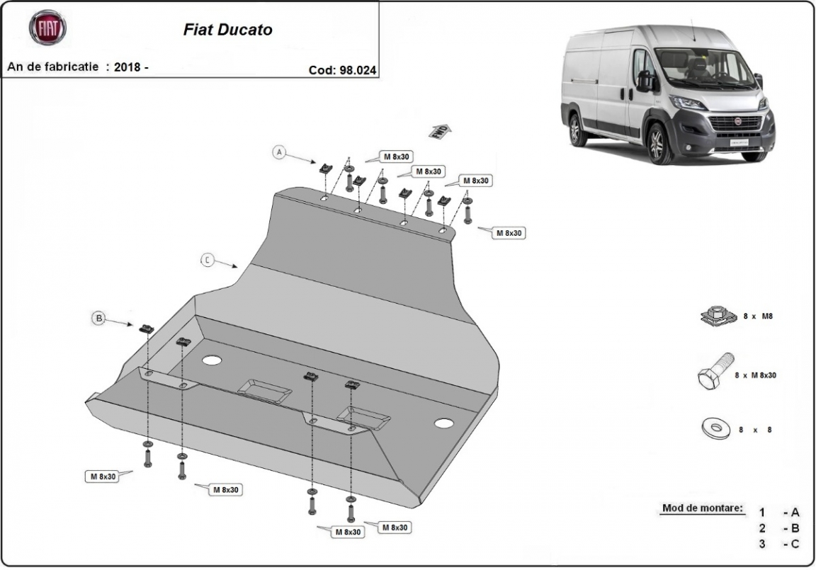 | Kryt pod motor je nová a dokonale padne pro všechny verze Fiat Ducato vyrobené v letech 2018 až 2026. |