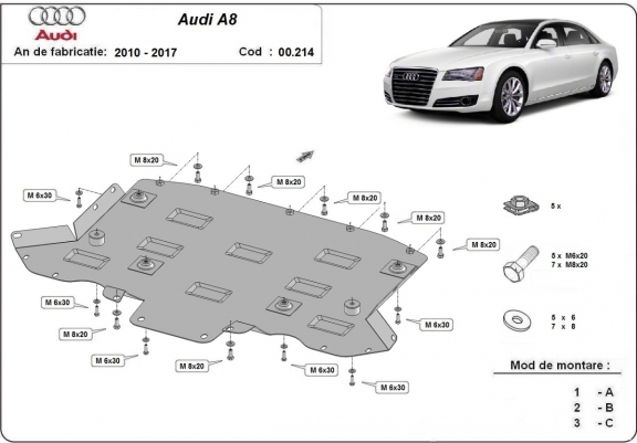 | Kryt pod motor je nová a dokonale padne pro všechny verze Audi A8 vyrobené v letech 2010 až 2017. |