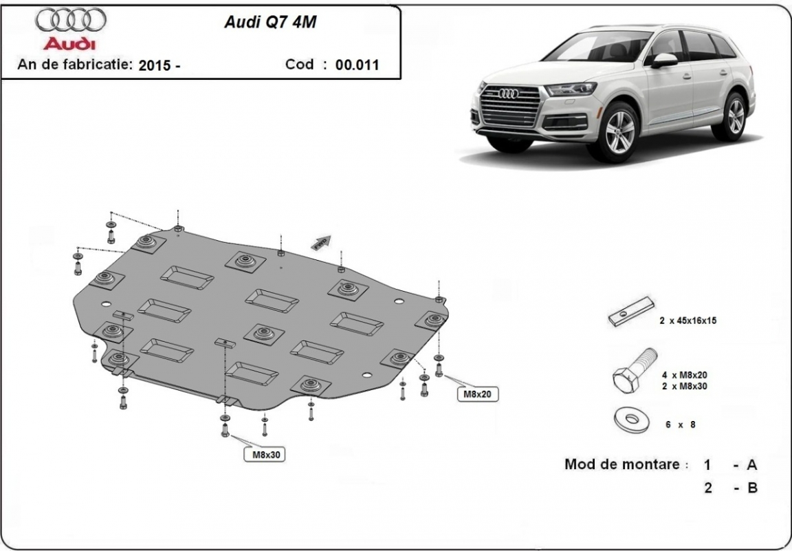 | Kryt pod motor je nová a dokonale padne pro všechny verze Audi Q7 vyrobené v letech 2015 až 2026. |
