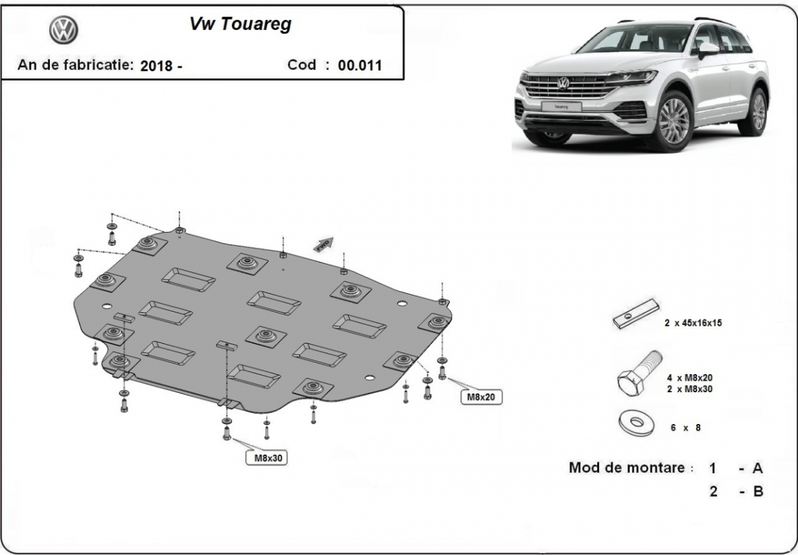 | Kryt pod motor je nová a dokonale padne pro všechny verze VW Touareg vyrobené v letech 2018 až 2026. |