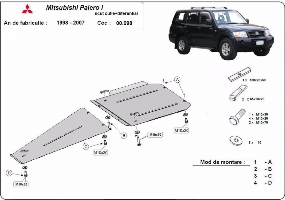 | Kryt pod motor je nová a dokonale se hodí pro Mitsubishi Pajero Sport 1, s následujícími verzemi motor / pohon: - vyráběné v letech 1998 až 2007. |