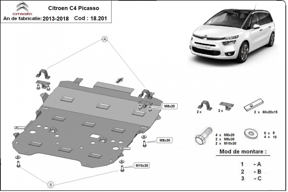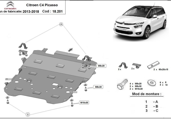 | Kryt pod motor je nová a dokonale padne pro všechny verze Citroen C4 Picasso vyrobené v letech 2013 až 2018. |