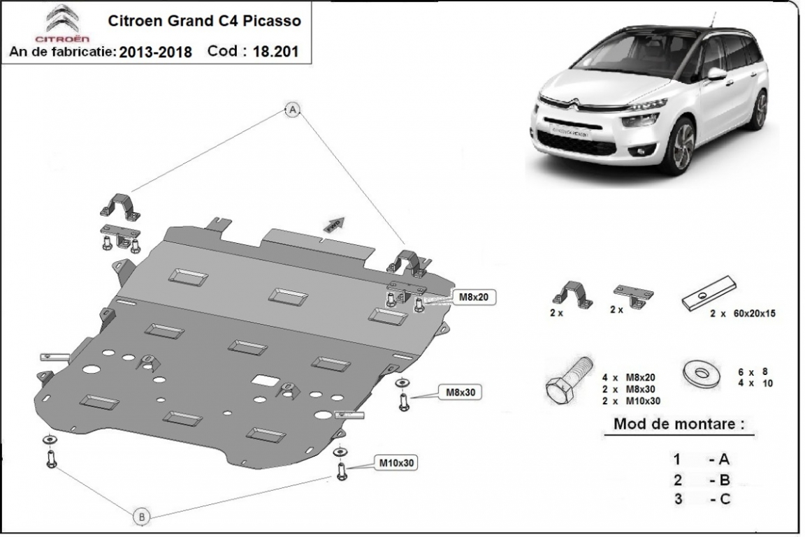 | Kryt pod motor je nová a dokonale padne pro všechny verze Citroen Grand C4 Picasso vyrobené v letech 2013 až 2018. |