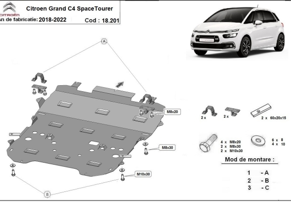 | Kryt pod motor je nová a dokonale padne pro všechny verze Citroen Grand C4 SpaceTourer vyrobené v letech 2018 až 2020. |