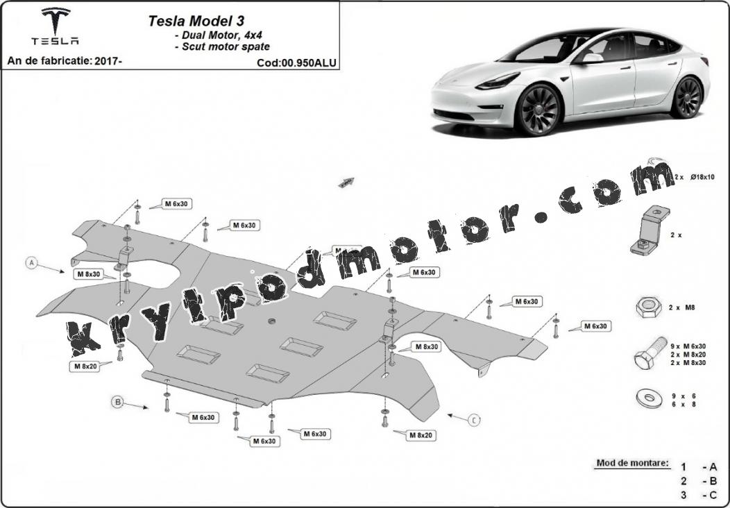 | Kryt pod motor je nová a dokonale padne pro všechny verze Tesla Model 3 AWD vyrobené v letech 2017 až 2026. |