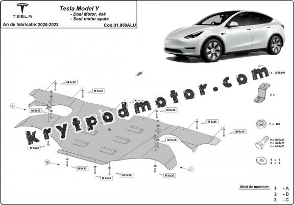 | Kryt pod motor je nová a dokonale padne pro všechny verze Tesla Model Y vyrobené v letech 2020 až 2023. |